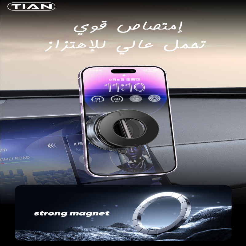 • قاعدة الجوال المغناطيسية تضمن تثبيت الجوال بشكل آمن حتى عند الاهتزاز